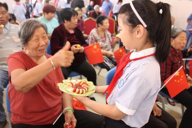 感謝這些善良的老師和可愛的孩子們帶來的精彩節(jié)目和愛心甜點,使老人們度過了一個快樂而又溫馨的重陽節(jié)。孩子是祖國的未來、民族的希望,讓我們共同祝福他們在成長的道路上越走越遠,祝愿老人們健康、快樂每一天!